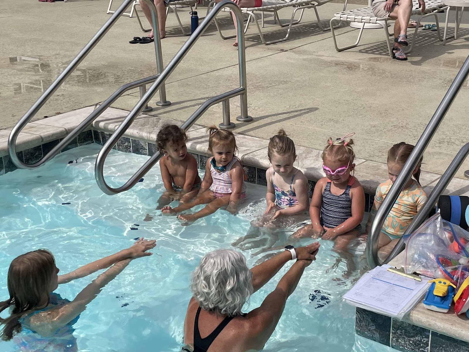 The kids both started swim lessons and are doing amazing. Bonnie is able to swim but still needs to work on getting her head up to breath while doing so. Riser was originally too young for lessons but once they saw him eagerly jumping in with no floatie on, they decided he was ready and let him join.
