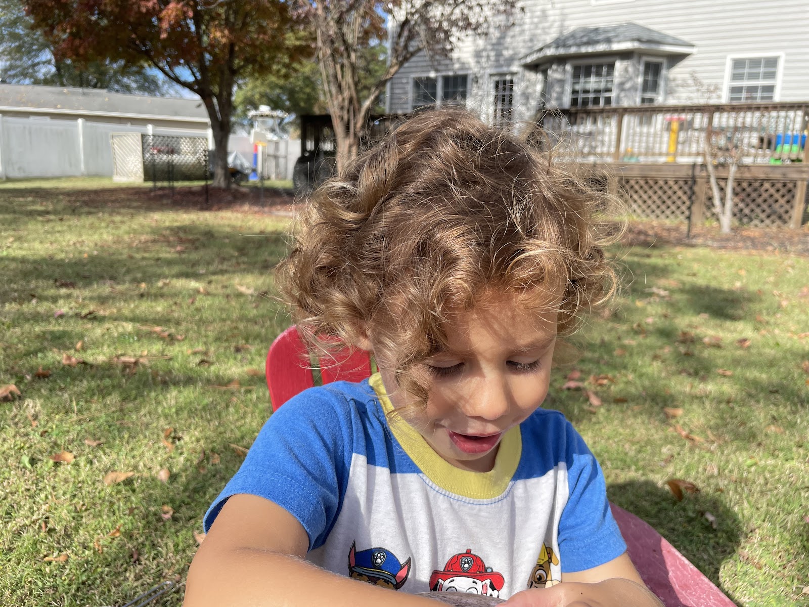 This year we went up to my mom and Dave's house for Thanksgiving. Their neighbor, Mary, put the kids to work straight away collecting all the spikey sweet gum balls from her yard. They each earned a well-deserved $5 which they were thrilled about.