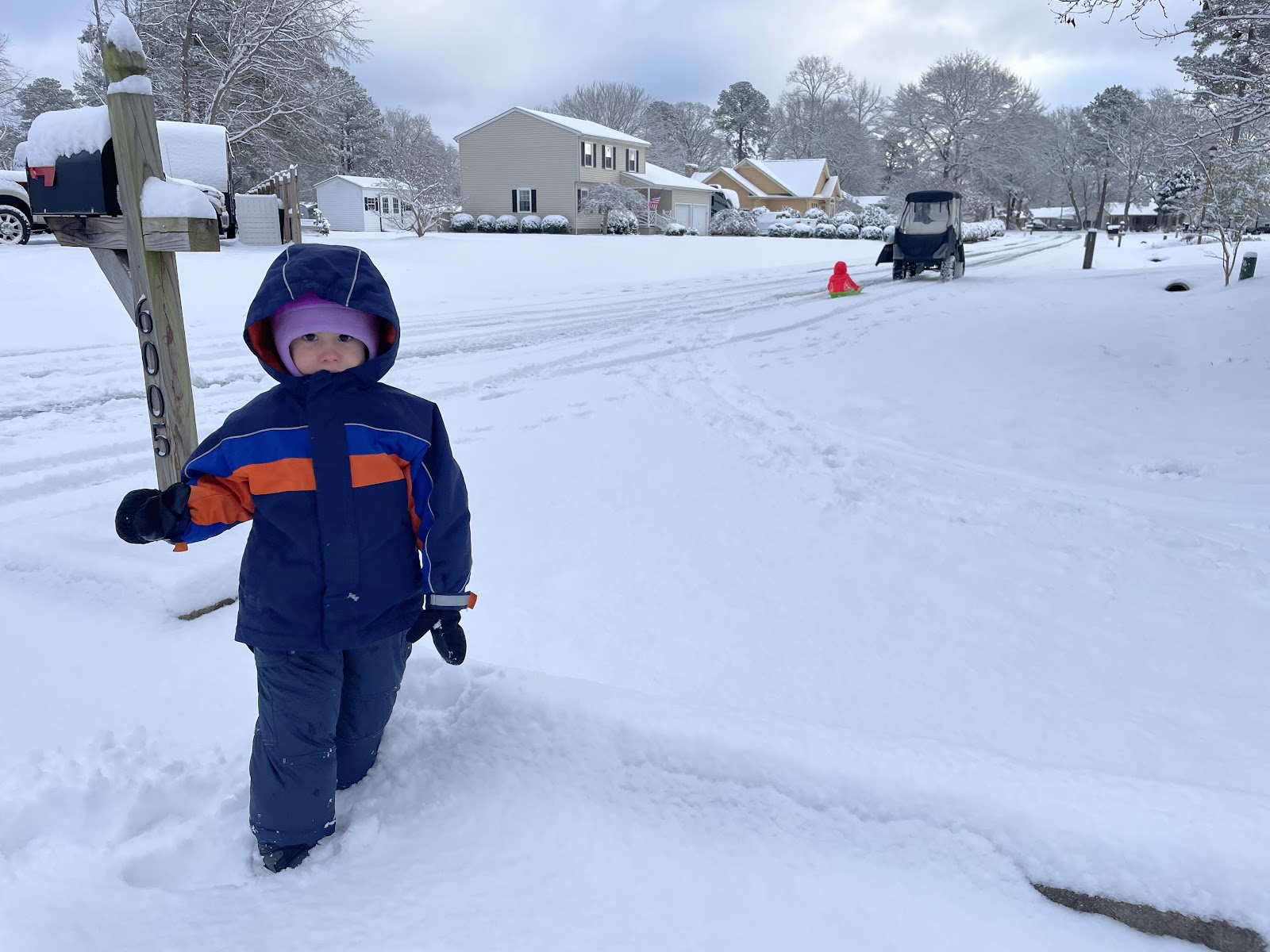 This month we finally got some long-awaited snow! And more than once! The kids (particularly Bonnie) was thrilled. She could not get outside fast enough. Riser is much less excited about having to bundle up and being out in the cold, but he was interested.